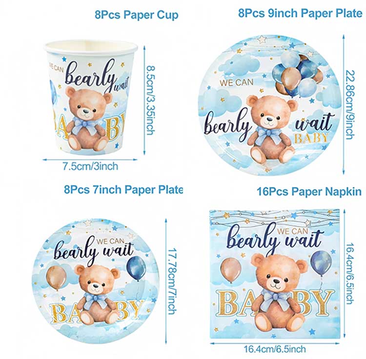 Baby fødselsdag engangs tallerken sæt størrelse: Produktet er pakket i OPP poser, men papir kort emballage er også tilgængelig. Vi kan tilpasse emballagen efter kundens specifikke krav.