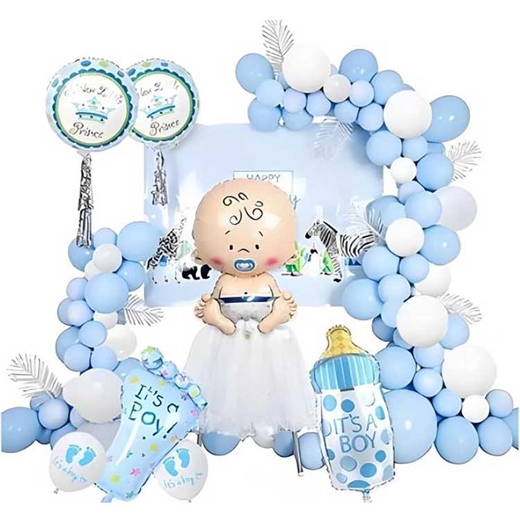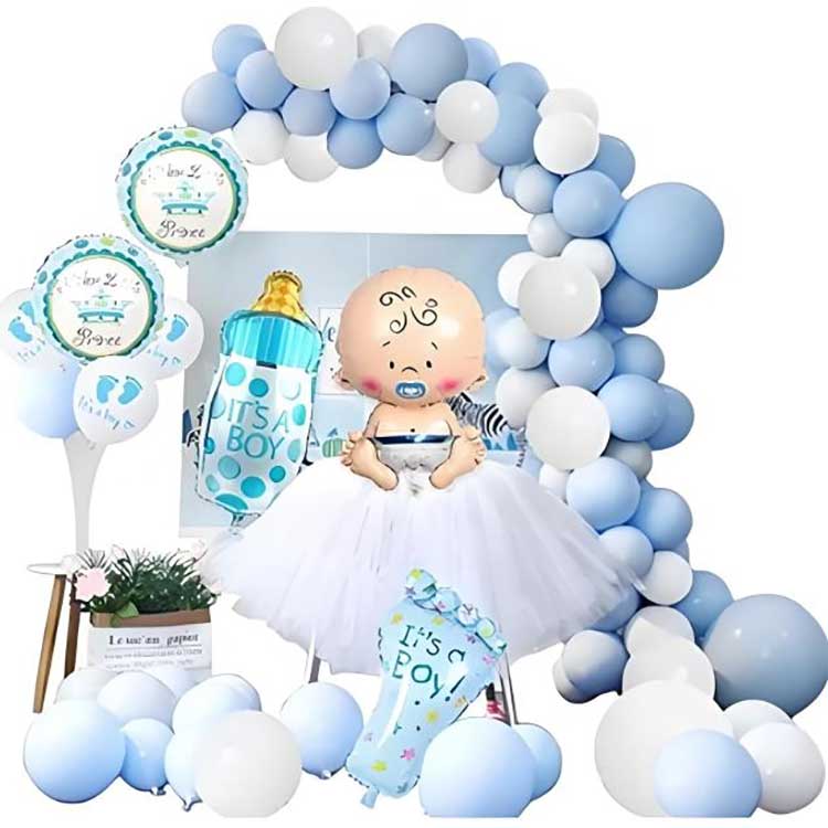 Baby shower ballon bue dekorationssættet kommer i to farvemuligheder, som er velegnede til henholdsvis drenge og piger. I vores design har vi lavet blå latexballoner fra Macaron-serien til drengenes outfits, samt folieballoner i form af drenge- og babyprodukter. Vi har også forberedt det samme tilbehør til pigernes outfits i den lyserøde serie. Farverne blå og pink fremhæver babyfestens tema, så alle deltagere kan føle atmosfæren af renhed og uskyld, vækst og håb.