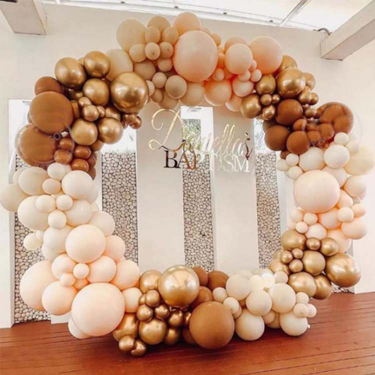 Ballonbuesættet indeholder over 100 latexballoner, limprikker, ballonkæder, knudemaskiner og emballageposer med logoer. Vi tilbyder forskellige stilarter af balloner for at opnå den fantastiske farveeffekt af buen. Den er velegnet til baggrundsdekoration af forskellige festbegivenheder, såsom dimissioner, bryllupper, fødselsdage, firmajubilæer og kan anvendes indendørs og udendørs.