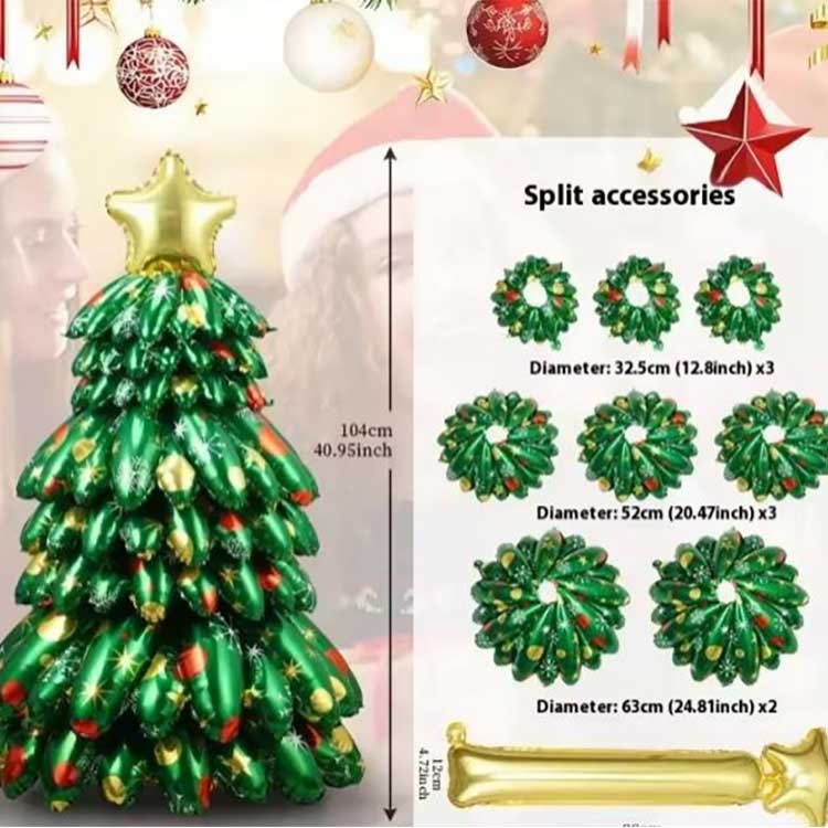 Denne juletræsstand-up folieballon er 130 cm x 73 cm i størrelse og tilbyder to farveskemaer: klassisk grønt træ og træ. Det klassiske grønne træ matcher julestemningen, mens det farverige træ, som et nyt produkt fra vores virksomhed, er velegnet til boligindretning, indkøbscentre, barer, firmaaktiviteter.