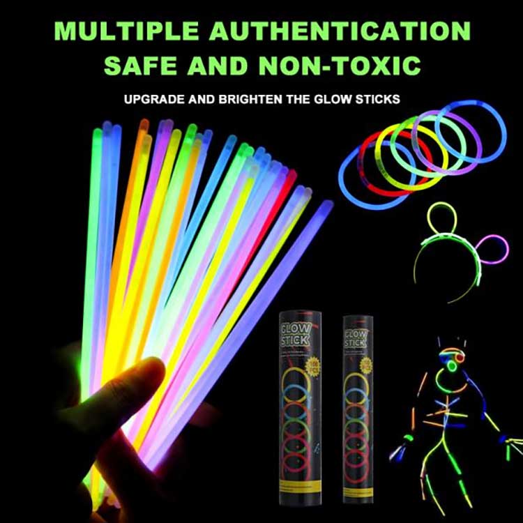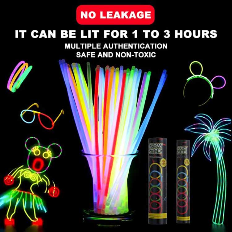 Glow stickt er blevet opgraderet til en lysere og mere iøjnefaldende farve. Den kan forblive oplyst i 1 til 3 timer. Det fluorescerende materiale, der bruges i de fluorescerende sticks, har en høj koncentration, hvilket resulterer i en langvarig og høj intensitet glød.