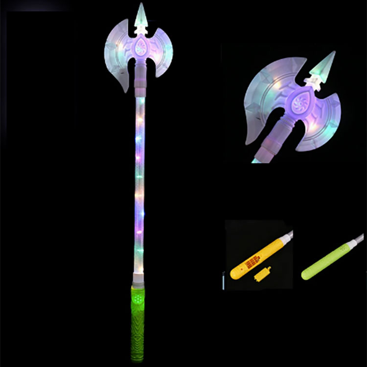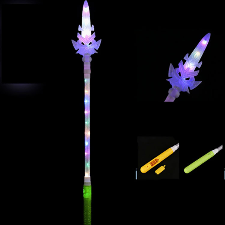 Glødende våbenlegetøj har en enkel struktur og er meget let at installere og skille ad. Hvert legetøj kræver 3 7-volts tørbatterier til strømforsyning. Der er en kontaktknap på toppen af legetøjet. Du skal bare trykke forsigtigt på det, og legetøjet begynder at virke. Bliv ved med at trykke på knappen, og den vil vise forskellige funktioner indtil sidste tryk. Den holder op med at virke ved den sidste presse. Betjeningsmetoden er så enkel, at enhver let kan mestre den.