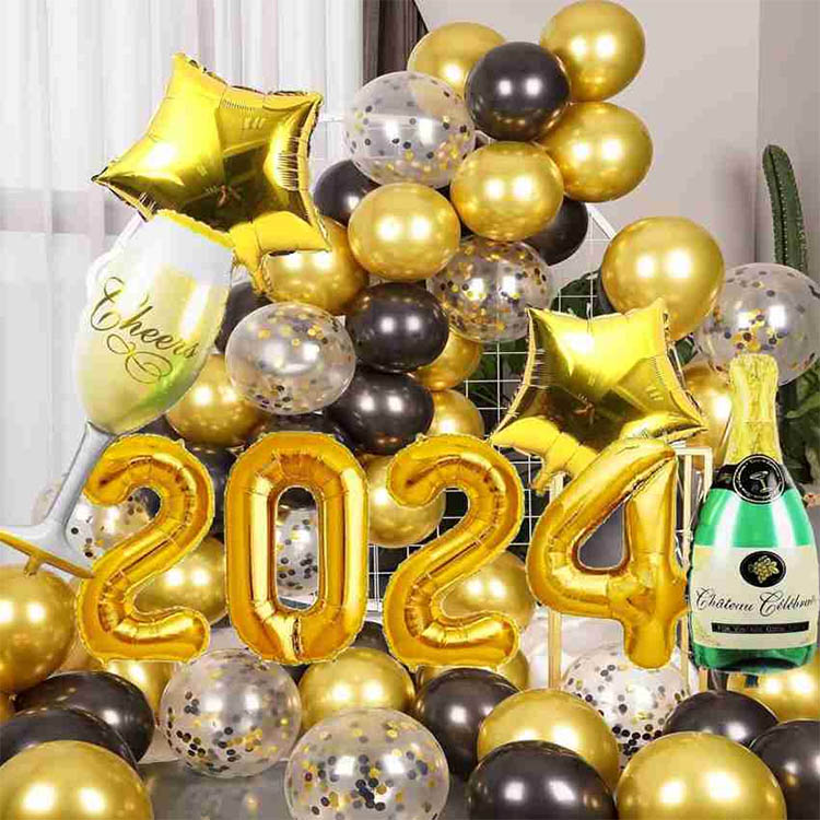 Feriefejringer: For eksempel i nytårsfejringer kan gyldne ballonnumre tilføje en festlig atmosfære.