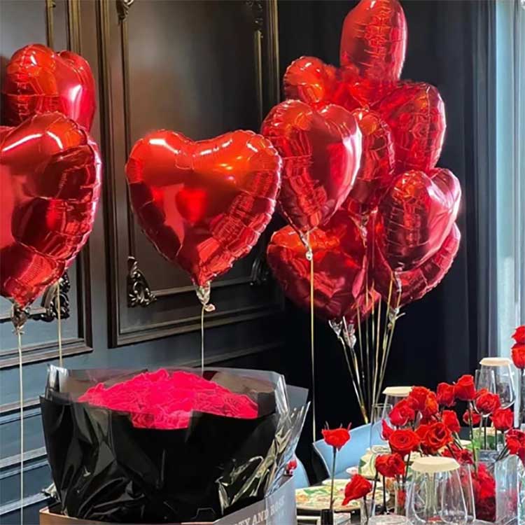 Hjerteformede aluminiumsfolieballoner er lavet af fortykket nylonmateriale, disse balloner kan prale af levende design trykt med miljøvenligt blæk. Der er 50 balloner per pakke.