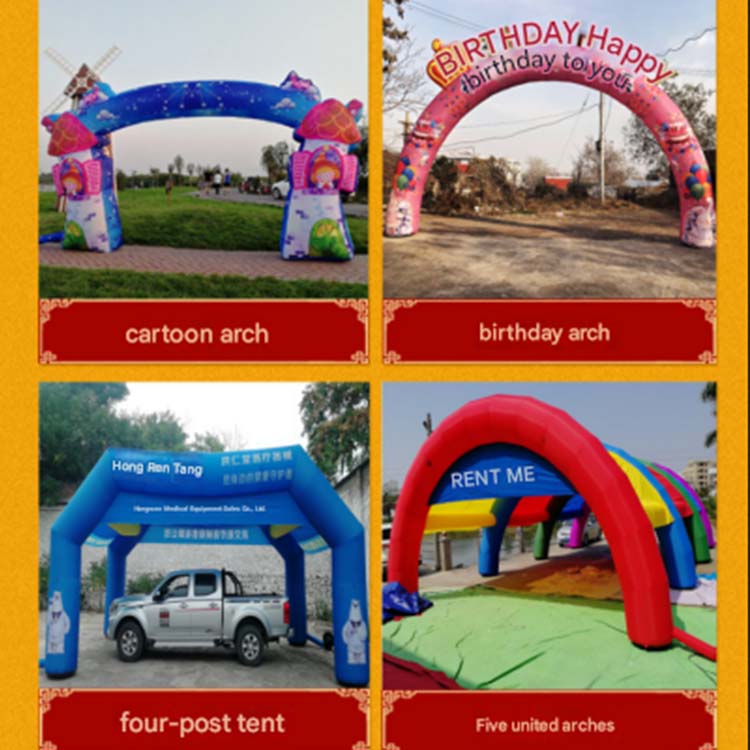 Lavet af holdbare materialer og fås i forskellige former og farver, og disse oppustelige buer blæser hurtigt op med en pumpe og leveres med sandposer og reb for nem installation. De kan udskrives på store tegn eller begivenhedsrum og er genanvendelige og økonomiske. De er perfekte til store åbninger, udstillinger, skolearrangementer og fester.