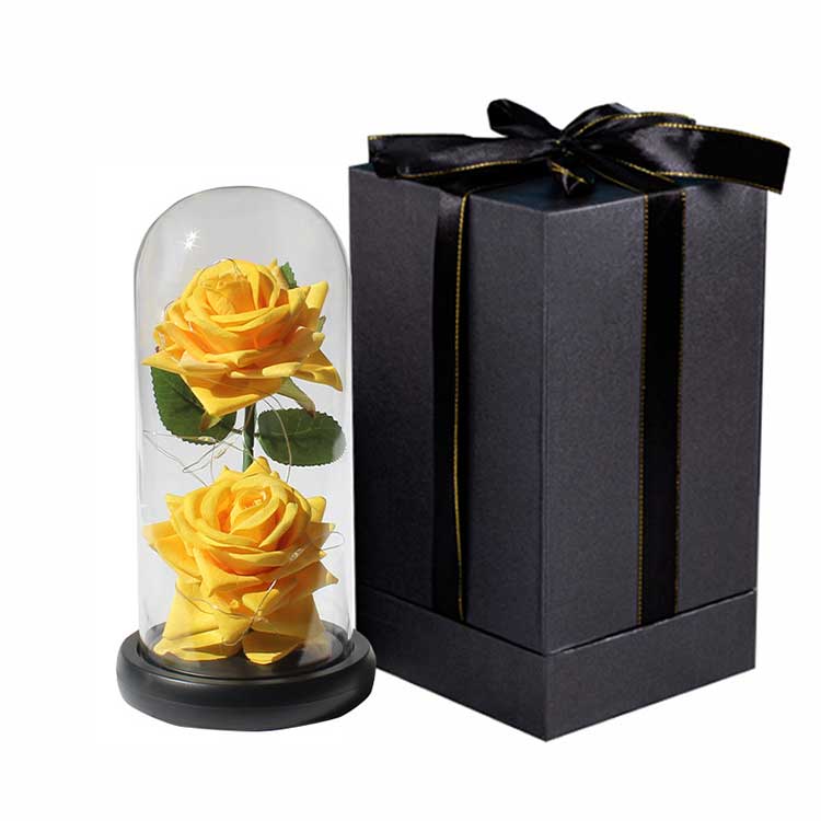 Vi tilbyder PVC- og fløjlsblade, og interiøret kan tilpasses med forskellige små figurer for at fremhæve produktets tiltrækningskraft. I modsætning til friske blomster, der kræver vanding og beskæring, kræver dette ingen vedligeholdelse. Tør blot glaskuplen af og til med en blød klud for at holde den ren og ny, perfekt egnet til nutidens hurtige livsstil.