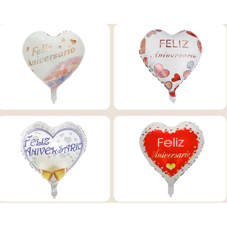 Spanske folieballoner er specielt designet til spansktalende festivaler og fester. Lavet med miljøvenlig aluminiumsfolie og trykt med miljøvenlig blæk, præsenterer de smukke spanske hilsner, der tilbyder både stærk dekorativ og praktisk værdi. Den spanske folieballon kommer i forskellige former, herunder runde, hjerte-, stjerne-, tal/bogstaver og uregelmæssige former, med en levende metallisk glans, der injicerer en rig spansk smag og følelse af ceremoni i forskellige festlige scener.