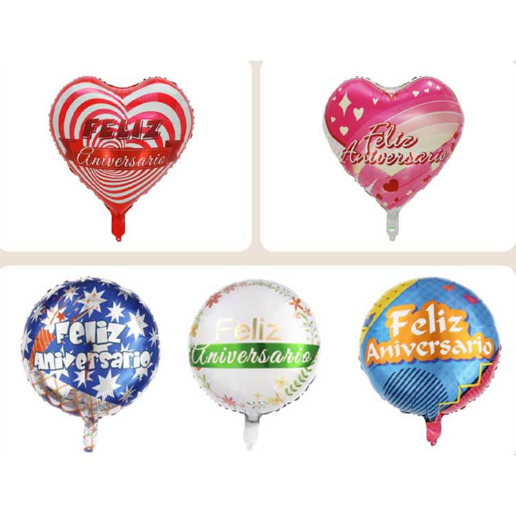 Spanske folieballonstørrelser: Fås i forskellige størrelser, inklusive 6-tommer, 10-tommer, 18-tommer og uregelmæssigt formede folieballoner.