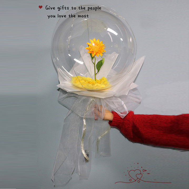 Solsikkeboboballon, blomsterbuket, ballonblomst, lysende ballon, valentinsdagsballon, LED lysende ballonsolsikkebuket, lys gennemsigtig ballon med blomster i mørket lysende ballon, jubilæumsgaver, bryllupsgaver, forlovelsesgaver. solsikkebuketter lavet af håndlavede solsikker af høj kvalitet, LED-lys og latexballoner. Denne tankevækkende gave vil helt sikkert imponere din elskede. Dette er en vidunderlig gave til en fødselsdag, jubilæum, mors dag, valentinsdag eller enhver dag.